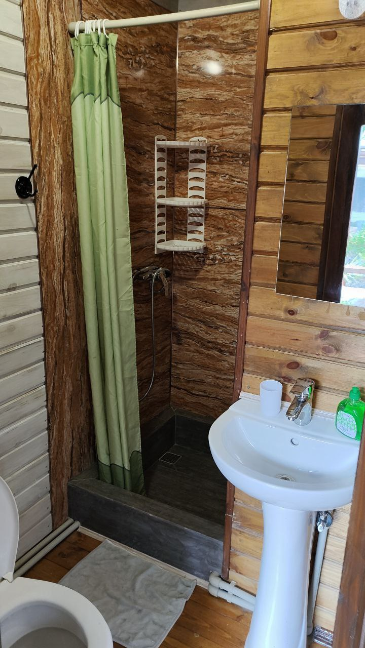 Удобства в номере: В уютном двухкомнатном номере имеется: двухспальная кровать(ортопедический матрас), москитные сетки на окнах, вентиляторы, два раскладных кресло-кровати,журнальный столик, кабельное телевидение, плазма ТВ, wi-fi, санузел (душевая кабина,туалет), холодильник-бар, стиральная машина в хоз.блоке